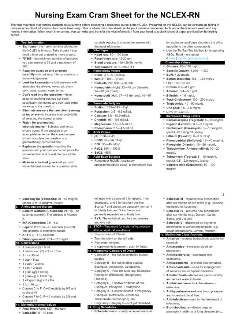 Free Printable Nclexpn Cram Sheet Printable